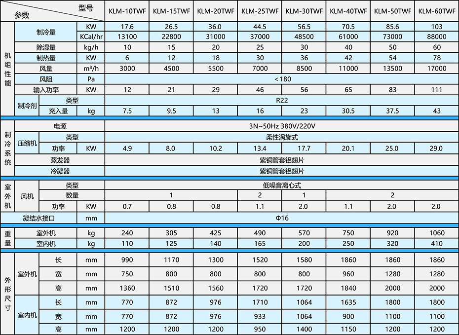 注: 1、設(shè)計工況:干球溫度27℃,濕球溫度21.2℃。最大負(fù)工況:干球溫度32℃,濕球溫度23℃。